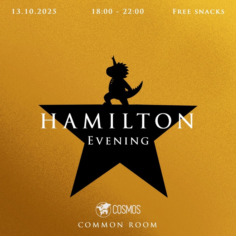 Join us for a Hamilton Evening on 13.10.2025 at 18:00 in the Common Room — be in “The Room Where It Happens” as we watch and sing along to the musical that made history.