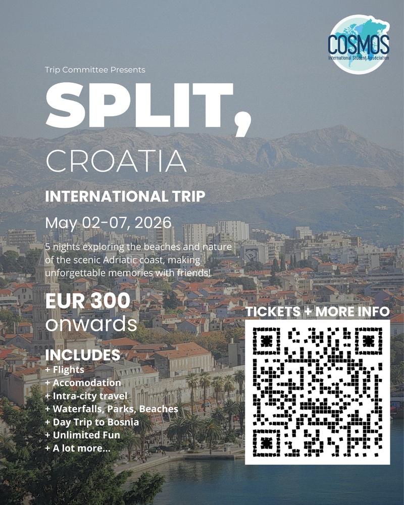 COSMOS is organizing a 6 day trip to Split, filled with history, beaches, nature and fun! The price includes flights, housing and some activities. Read the document in the link for more details.