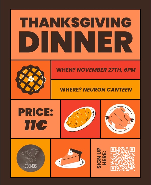 Come to our Thanksgiving Dinner on the 28th of November, at 18:00 for delicious food and fun activities!